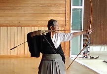 弓を持ってエアー八節 的前から矢を放つ