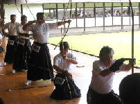 初めて射場から弓を引く 皆さん、安土までしっかり矢が飛んでいます
